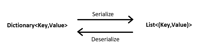 위 그림과 같이 직렬화시 List형식으로 저장하고, 역직렬화 시, Dictionary로 다시 재가공하여 사용하는 방식으로 구현할 생각이다.